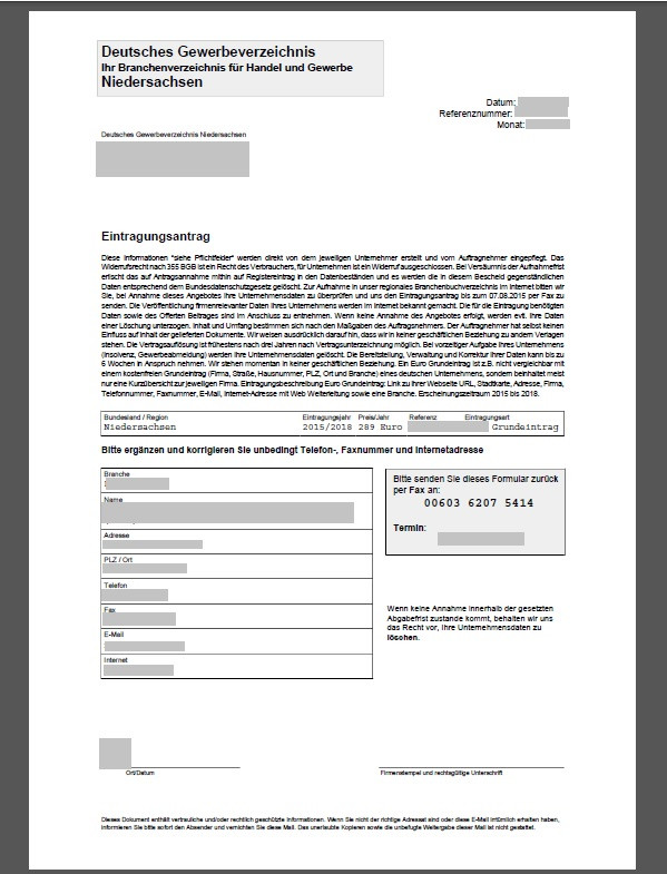 Aktuell wird wieder das "Deutsche Gewerbeverzeichnis" mit amtlich aussehendem Anschein verschickt.