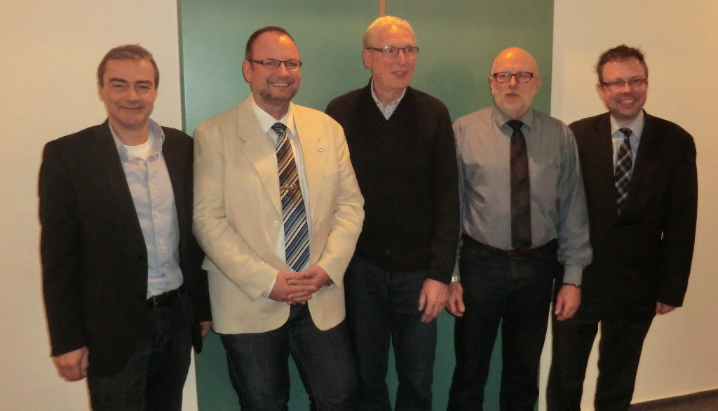 Samtgemeindebürgermeister Björn Gehrs, Hans Wersching, Günter Seehausen, Olav Tietz und Martin Geisel.