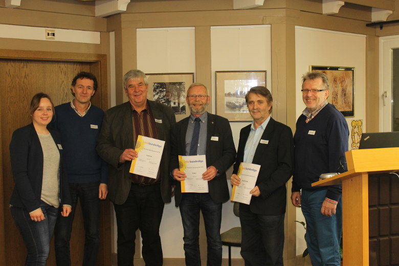 Energiegeladen ging es mit der Siegerehrung der Solarbundesliga los. In der Solarbundesliga werden jährlich die bei der Solarenergienutzung erfolgreichsten Kommunen in Deutschland ausgezeichnet. Den ersten Platz im Aller-Leine-Tal und im Land Niedersachsen belegt im Jahr 2016 die Gemeinde Frankenfeld. Die Plätze zwei und drei gehen an die Gemeinden Gilten und Grethem. Um diesen Erfolg zu ehren, überreichten die EwALT-Mitglieder Karl Gerhard Tamke, Bürgermeister der Gemeinde Hodenhagen, und Stefan Dreesmann, Sprecher der Projektgruppe E-Mobilität und Solarenergie, den Bürgermeistern der Gemeinden je eine Urkunde und ein kleines Präsent in Form von essbaren Gummi-Sonnen.