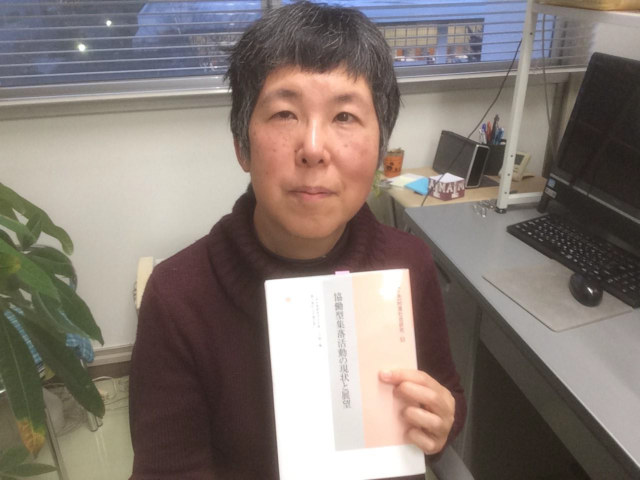 Foto (Urheber: Prof. Dr. Tomoko Ichida/KoRiS): Prof. Dr. Tomoko Ichida mit der in Japan erschienen Publikation, in der über LEADER sowie über die LEADER-Aktivitäten im Aller-Leine-Tal berichtet wird