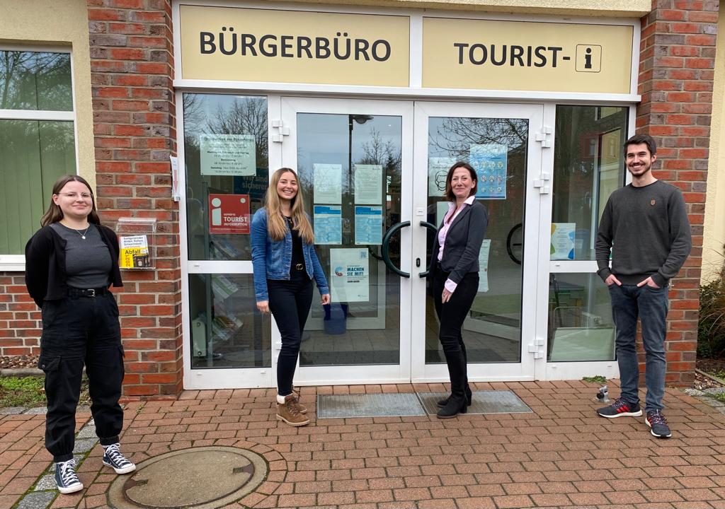 Zum Foto: Neuer Bürgerservice: Die Mitarbeiter des Bürgerbüros Schwarmstedt machen mit der Online-Terminvergabe den Anfang. v.l. Conny Brunke, Lea Endtricht, Katharina Fenske, Damian Witzke.