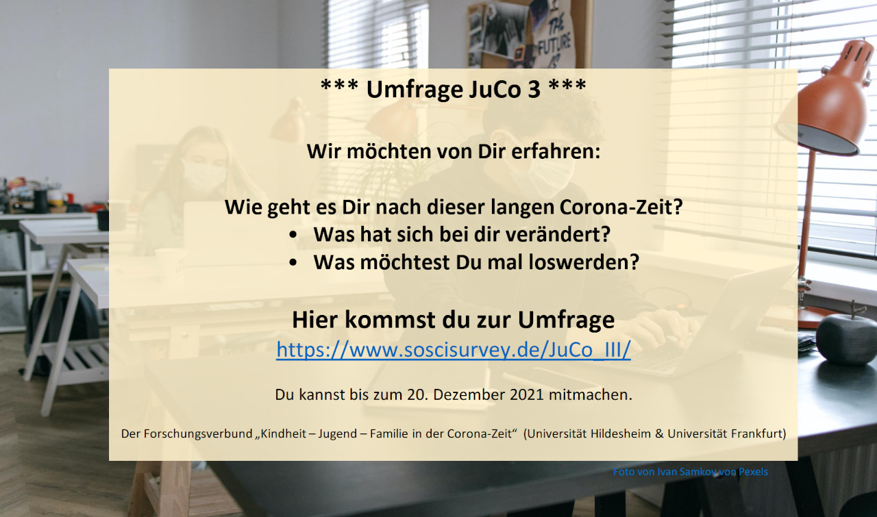 Die Studie wird durch den Forschungsverbund „Kindheit – Jugend – Familie in der Corona-Zeit“, der sich aus Forschenden der Universität Hildesheim und der Universität Frankfurt zusammensetzt, durchgeführt.