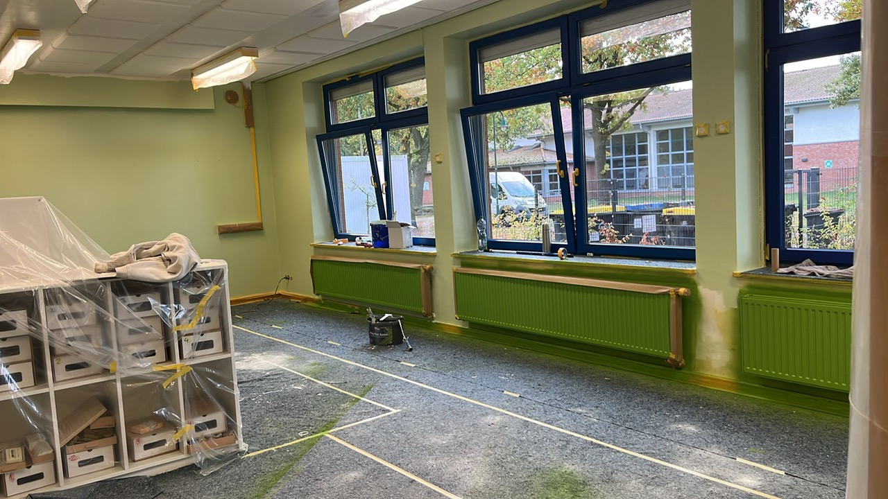 Zum Foto: Die Samtgemeinde Schwarmstedt nutzt die Herbstferien, um in den laufenden Unterhalt der Grundschulen zu investieren. Das Bild zeigt die Arbeiten an der Grundschule Buchholz. Foto: Gemeinde