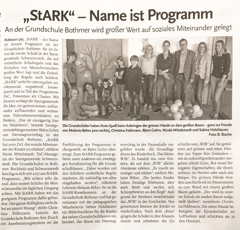 pac-aktuell-2017-11-walsroder-stark Störungsfrei, Anerkennend, Respektvoll und Konsequent. Kurz und knapp StARK. So heißt das Programm zum Sozialen Lernen für welches sich die Grundschulen Schwarmstedt, Bothmer und Buchholz im Rahmen von PaC – Prävention als Chance entschieden haben.