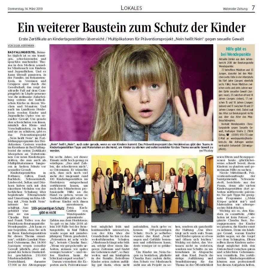 im Rahmen von Prävention als Chance (PaC) - Der erste Teil des Projektes „Nein heißt Nein“ startete im April in den KiTas der Samtgemeinde Schwarmstedt. Das Projekt wird vom Präventionsrat der Samtgemeinde Schwarmstedt e.V. und dem Kreispräventionsrat Heidekreis gefördert und von Nicole Mittelstaedt (PaC-Managerin) organisiert.