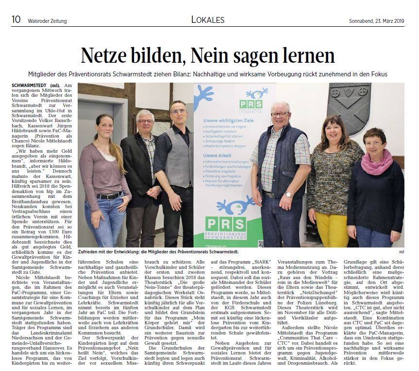 pac-aktuell-2019-04-03-wz PaC: Mitglieder des Präventionsrats Schwarmstedt ziehen Bilanz: Nachhaltige und wirksame Vorbeugung rückt zunehmend in den Fokus