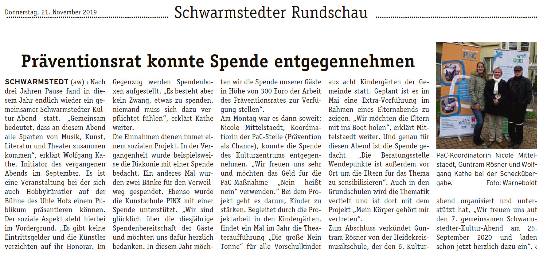 Artikel aus der Schwarmstedter Rundschau vom 21.11.2019
