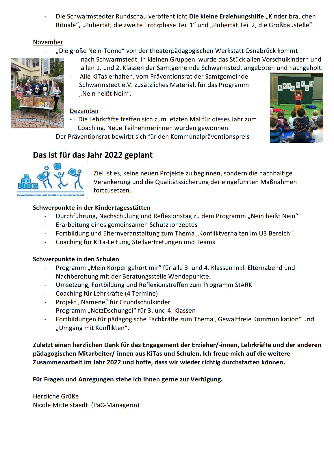 pac-aktuell-2025-11-mat Der Präventionsrat der Samtgemeinde Schwarmstedt e.V. hat gemeinsam mit der Präventionsfachkraft der Samtgemeinde neues Material zur Unterstützung des Projekts „Nein heißt Nein“ an die Leitungen der Kindertagesstätten übergeben.