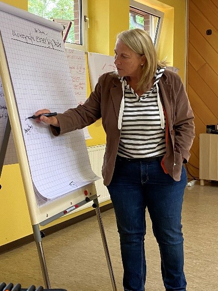 Imke Huntemann, (Dipl. Sozialpädagogin, Verhalten- und Suchttherapeutin, Qualitätsmanagerin, Supervisorin von KiTa-Teams und Coach mit eigener Praxis) übernahm die Moderation und ging dabei auf die Bedürfnisse der Teilnehmer:innen ein. Ihre Schwerpunkte liegen in der Prozessbegleitung, Teamentwicklung, Leitungscoaching und Leitungsfortbildung.