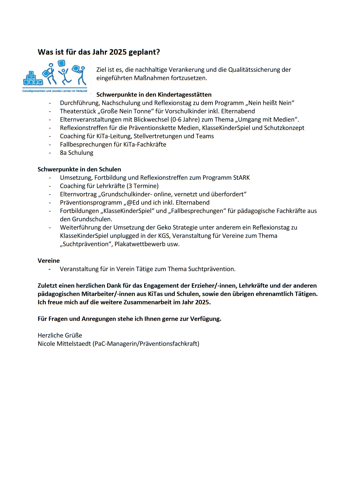 pac-aktuell-2025-11-mat Der Präventionsrat der Samtgemeinde Schwarmstedt e.V. hat gemeinsam mit der Präventionsfachkraft der Samtgemeinde neues Material zur Unterstützung des Projekts „Nein heißt Nein“ an die Leitungen der Kindertagesstätten übergeben.